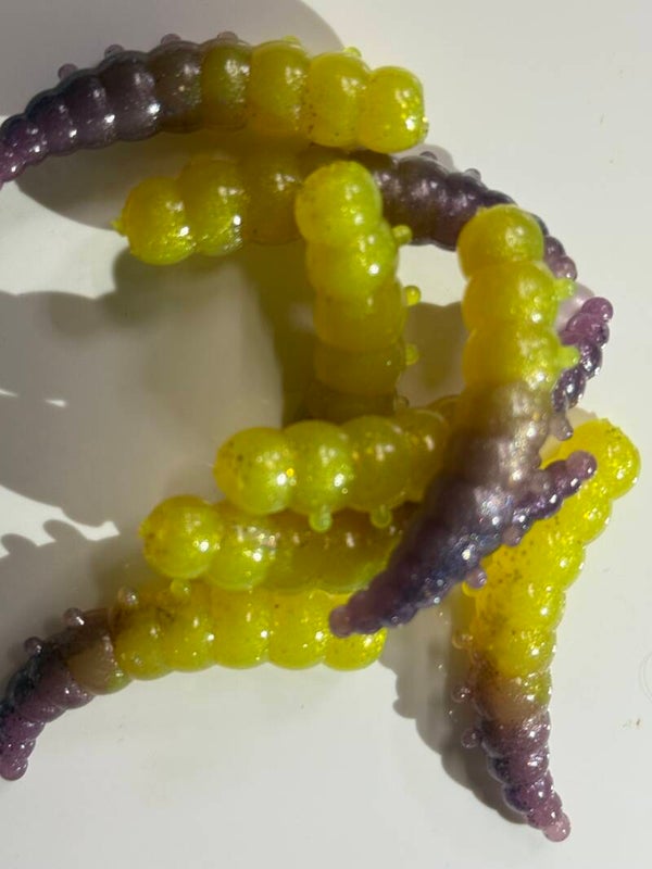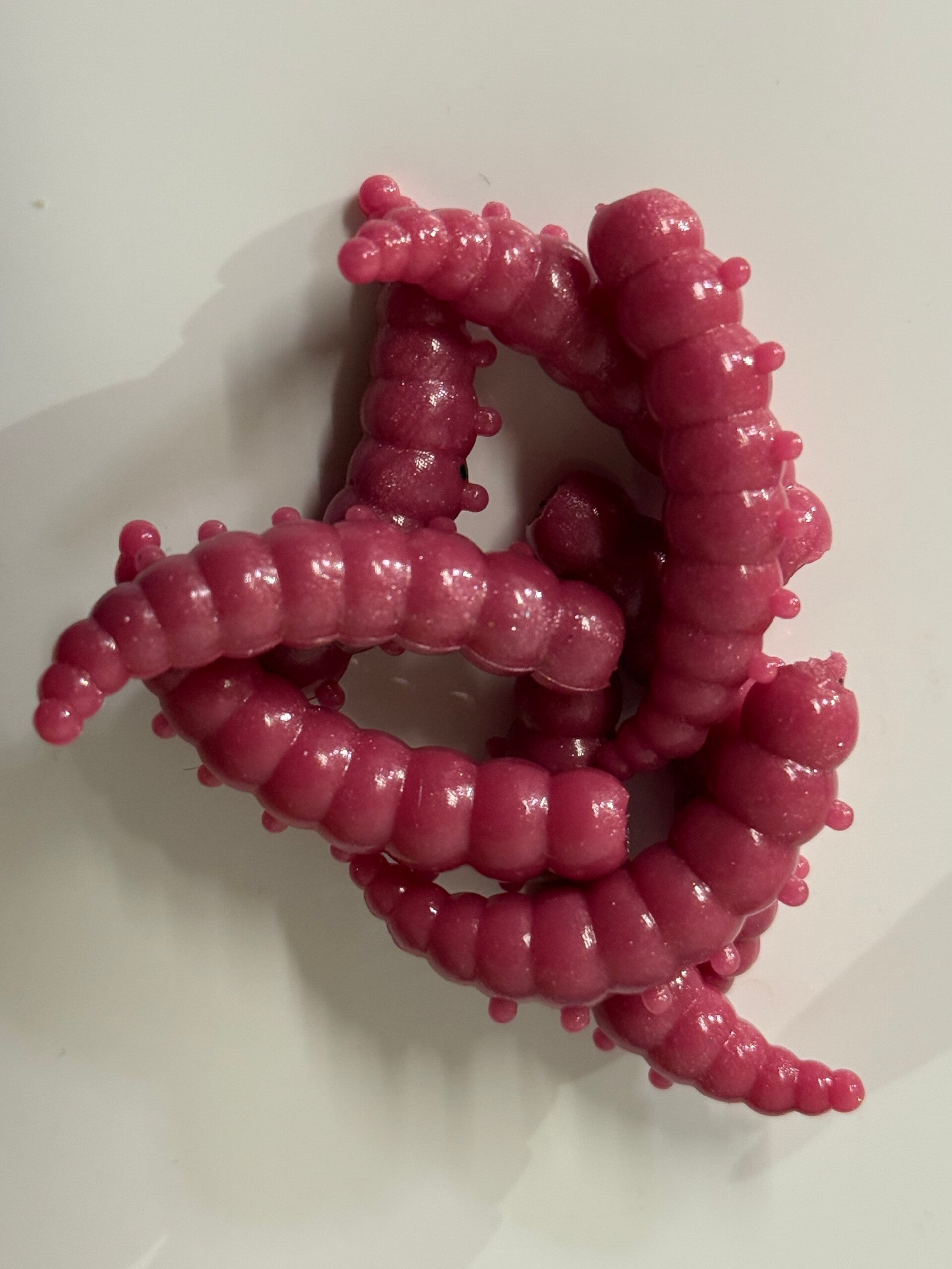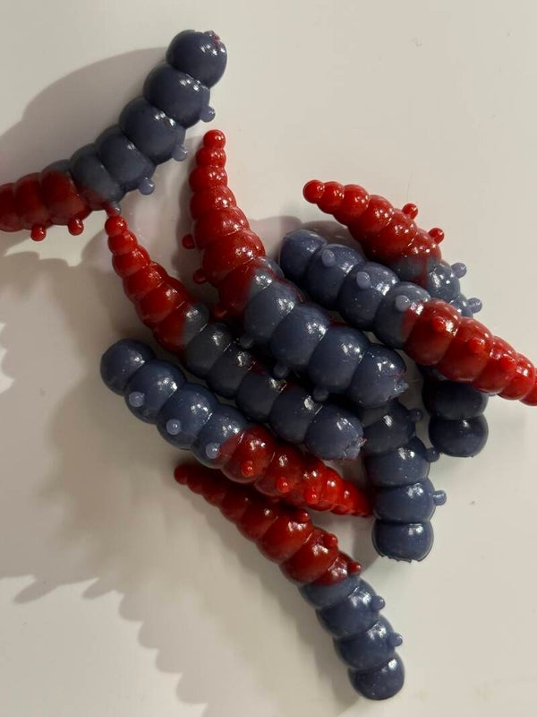 Diese weichen, wurmartigen Forellenköder bestehen aus flexiblem, strapazierfähigem Gummimaterial und zeichnen sich durch ihre leuchtende violette Farbe aus. Die realistische Körperform mit segmentierter Oberfläche erzeugt unter Wasser eine verführerische Bewegung, die die Aufmerksamkeit von Forellen sofort auf sich zieht.
